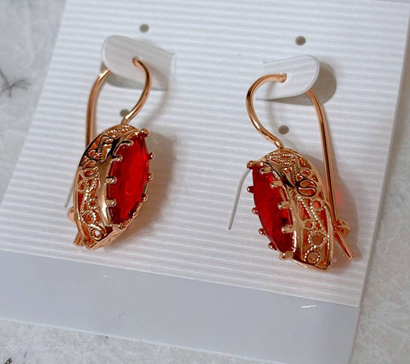 Гипоаллергенная бижутерия. Ювелирный сплав, покрытие выполнено из золота 585 пробы, вставки — фианиты. Длина 3,3 см, французский замок.