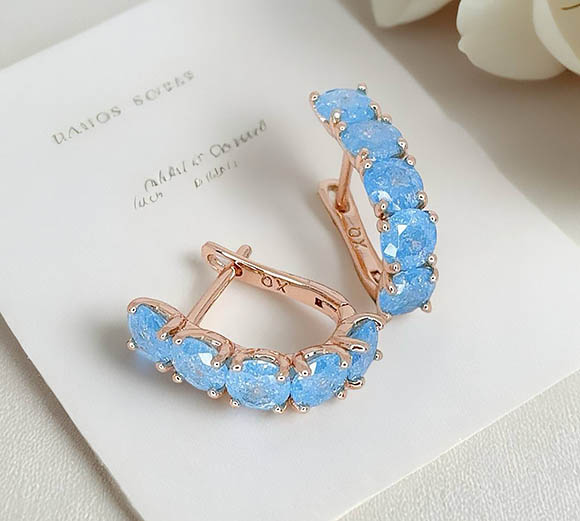 Позолоченный гипоаллергенный сплав (покрытие —золото 585 пробы), вставки — фианиты. Размер 1,9 см, английский замок.