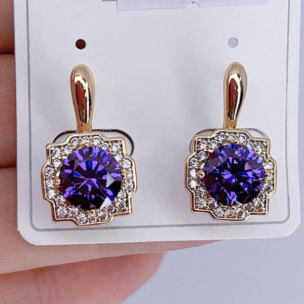 Не вызывающая аллергии бижутерия. Ювелирный сплав, покрытие — золото 585 пробы, вставки — фианиты. У серег английский замок.