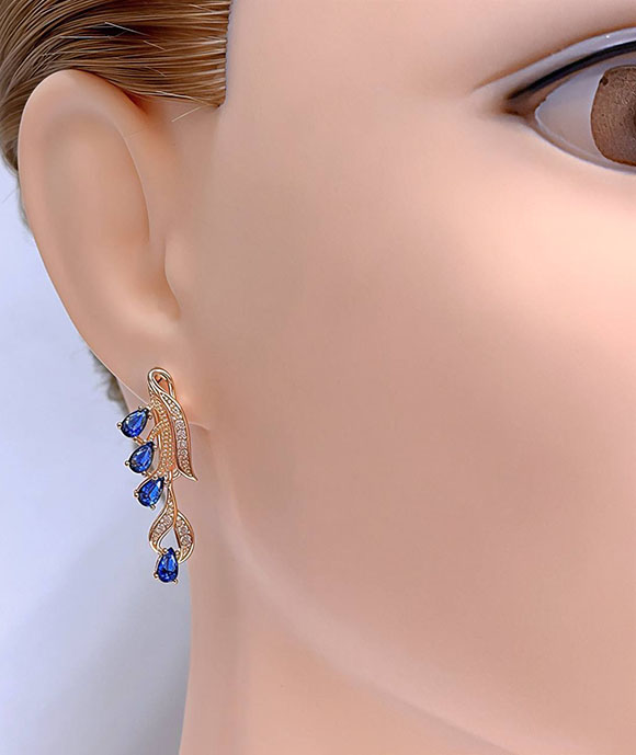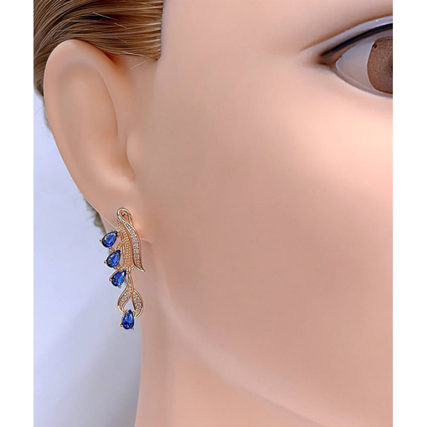 Гипоаллергенная бижутерия. Покрытый золотом 585 пробы ювелирный сплав, вставки — фианиты. Длина серег 3 см, английский замок.