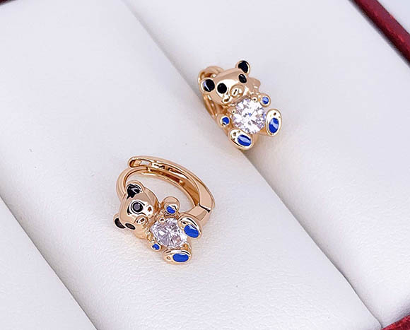 Гипоаллергенная бижутерия. Ювелирный сплав, покрытие — золото 585 пробы, вставки — эмаль и фианиты. Размер 1 см, замок кольцо.