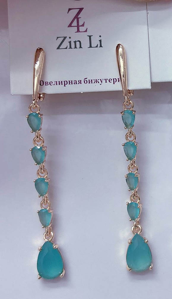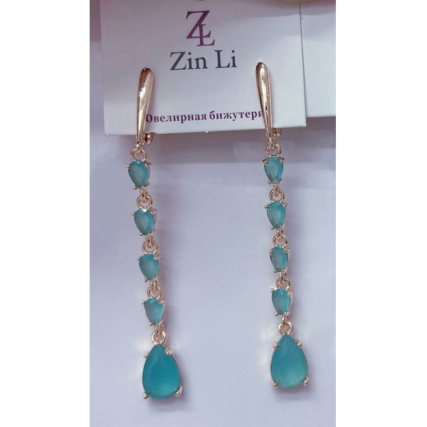 Позолоченный гипоаллергенный сплав (покрытие —золото 585 пробы), вставки — фианиты. У серег английский замок.