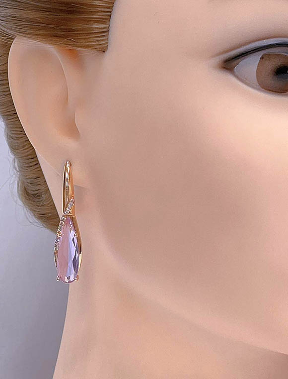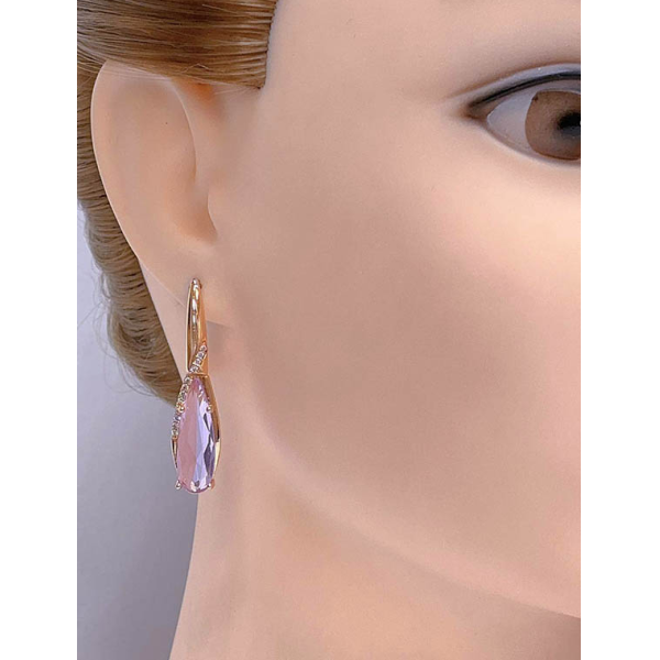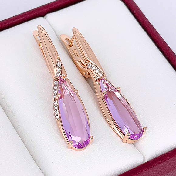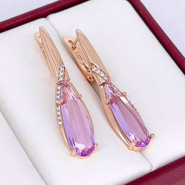 Ювелирный сплав, гипоаллергенное золотое покрытие (из золота 585 пробы), вставки — фианиты. Длина серег 4 см, английский замок.