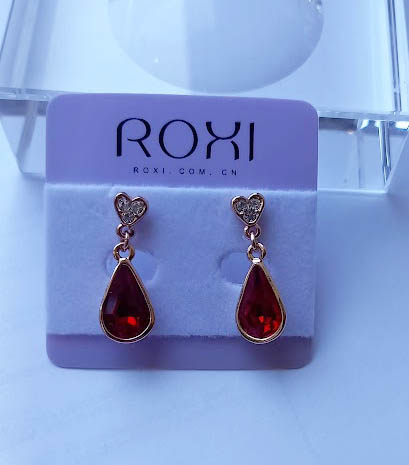 Гипоаллергенная бижутерия, покрытие — розовое золото (золото 585 пробы). Вставка —  фианиты. Застежка — гвоздик (штифт с фиксирующим зажимом). Высота серьги — 25 мм, ширина — 10  мм. Осталось 2 пары.