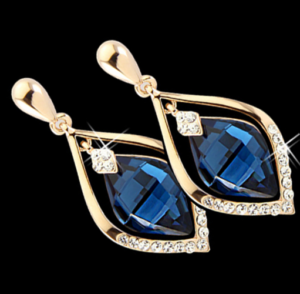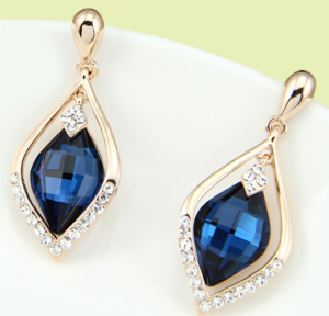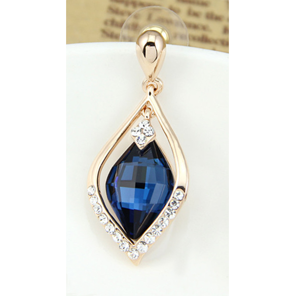 Гипоаллергенная бижутерия, покрытие — розовое золото (золото 585 пробы). Застежка — гвоздик (штифт с фиксирующим зажимом). Высота — 43 мм, ширина — 18 мм. Вставки — фианиты. Осталось 2 пары.