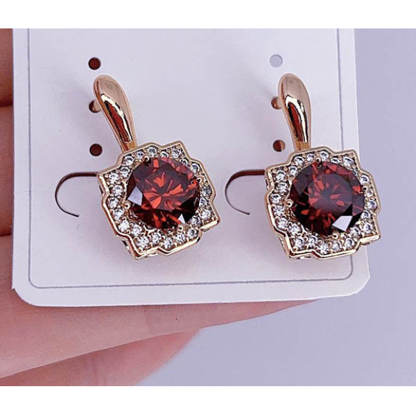 Позолоченный гипоаллергенный сплав (покрытие —золото 585 пробы), вставки — фианиты. У серег английский замок.