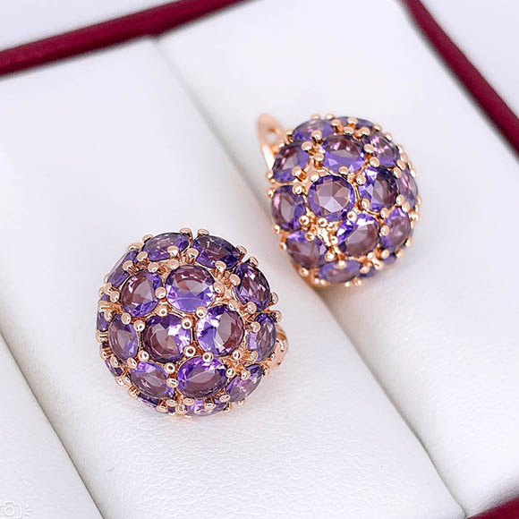 Позолоченный гипоаллергенный сплав (покрытие —золото 585 пробы), вставки выполнены из фианитов. Размер серег 1,5 см, английский замок.