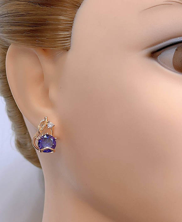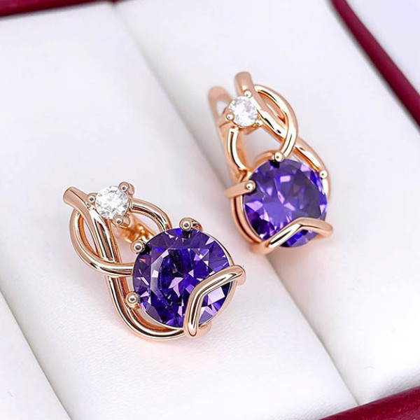 Не вызывающая аллергии бижутерия. Ювелирный сплав, покрытие — золото 585 пробы, вставки — фианиты. Размер 1,9 см, английский замок.