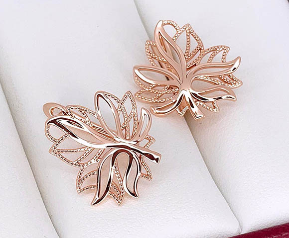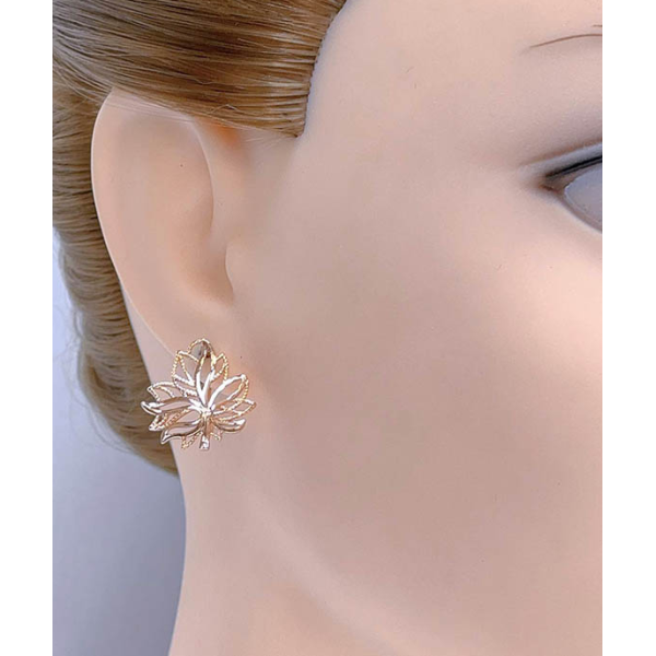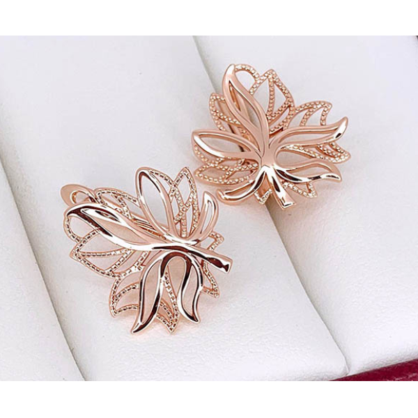 Не вызывающая аллергии бижутерия. Ювелирный сплав, покрытие — золото 585 пробы. Размер серег 1,9 см, английский замок.