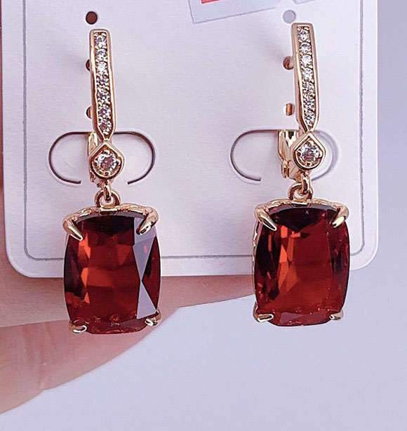 Не вызывающая аллергии бижутерия. Ювелирный сплав, покрытие — золото 585 пробы, вставки — фианиты. У серег английский замок.