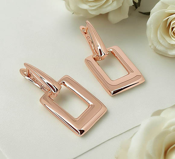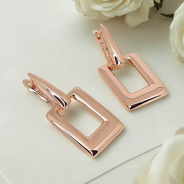 Гипоаллергенная бижутерия. Ювелирный сплав, покрытие — золото 585 пробы. Размер серег 3,1 см, английский замок.