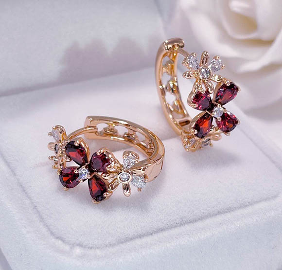 Ювелирный сплав, гипоаллергенное покрытие из золота 585 пробы, вставки — фианиты. Размер серег 1,9 см, замок кольцо.