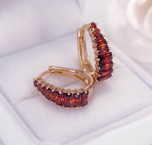 Гипоаллергенная бижутерия. Ювелирный сплав, покрытие выполнено из золота 585 пробы, вставки — фианиты. Размер 1,9 см, замок кольцо.