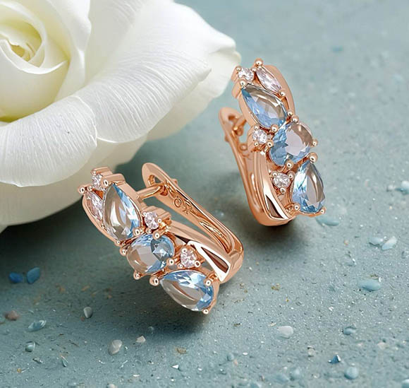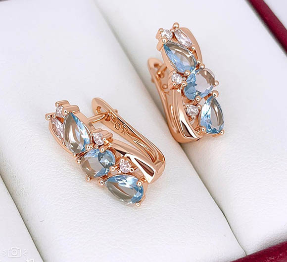 Гипоаллергенная бижутерия. Покрытый золотом 585 пробы ювелирный сплав, вставки выполнены из фианитов. Размер серег 1,8 см, английский замок.