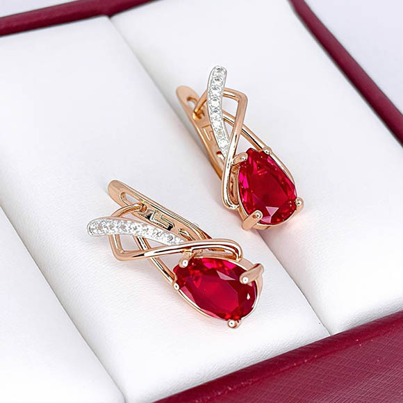 Не вызывающая аллергии бижутерия. Ювелирный сплав, покрытый золотом 585 пробы и родием, вставки выполнены из фианитов. Высота серег 2,1 см, английский замок.