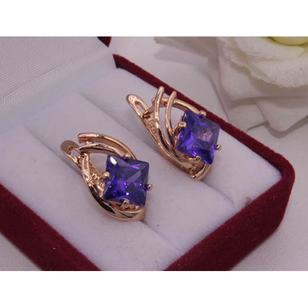 Не вызывающая аллергии бижутерия. Ювелирный сплав, покрытие — золото 585 пробы, фианитовые вставки. Размер 1,9 см, английский замок. Осталась 1 пара.