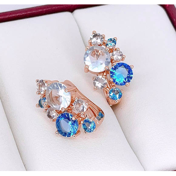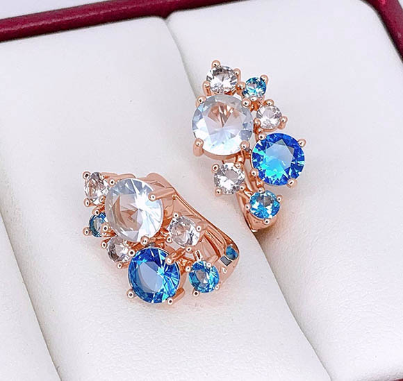Гипоаллергенная бижутерия. Покрытый золотом 585 пробы ювелирный сплав, вставки — фианиты. Размер 2 см, английский замок.