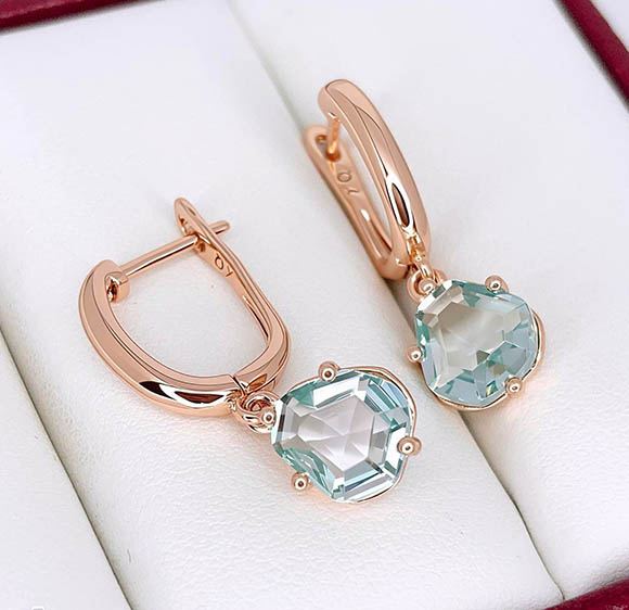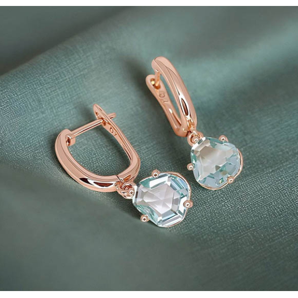 Гипоаллергенная бижутерия. Ювелирный сплав, покрытие — золото 585 пробы, фианитовые вставки. Высота 2,8 см, английский замок.