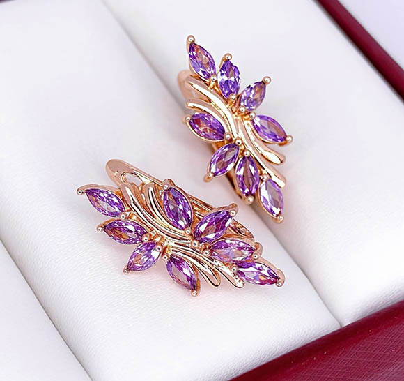 Гипоаллергенная бижутерия. Покрытый золотом 585 пробы ювелирный сплав, вставки — фианиты. Длина 2,3 см, английский замок.