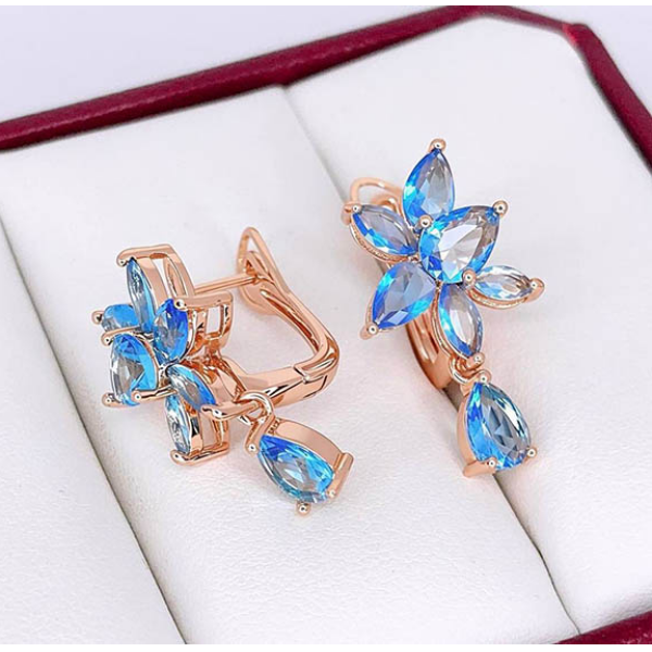 Гипоаллергенная бижутерия. Покрытый золотом 585 пробы ювелирный сплав, вставки — фианиты. Высота серег 2,6 см, английский замок.