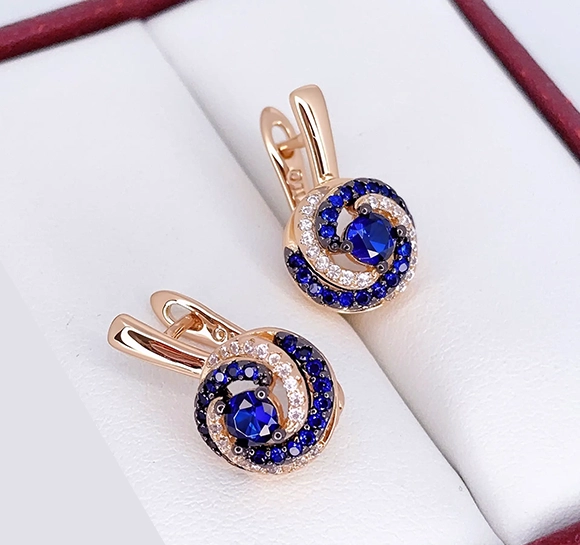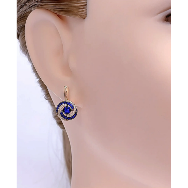 Гипоаллергенная бижутерия. Ювелирный сплав, покрытие — золото 585 пробы, вставки — фианиты. Размер 1,8 см, английский замок.