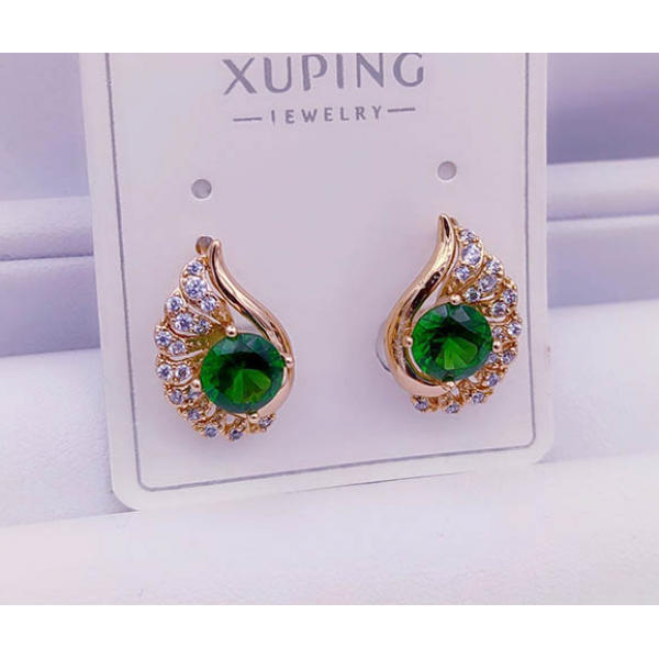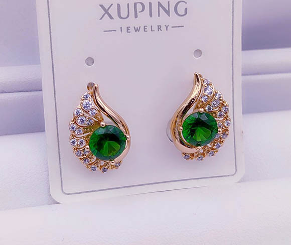 Не вызывающая аллергии бижутерия. Ювелирный сплав, покрытый золотом 585 пробы, вставки — фианиты. Размер 1,8 см, английский замок.