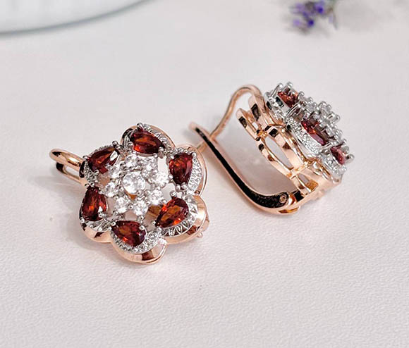Не вызывающая аллергии бижутерия. Ювелирный сплав, покрытие — золото 585 пробы и родий, вставки выполнены из фианитов. У серег английский замок.