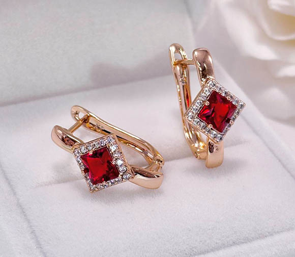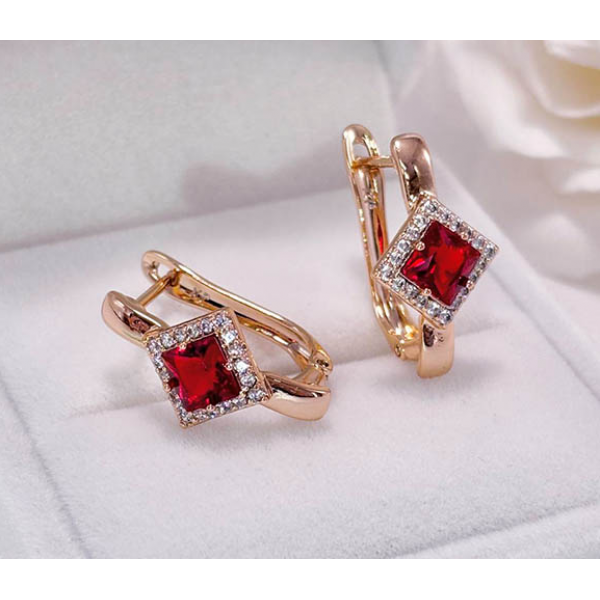 Гипоаллергенная бижутерия. Ювелирный сплав, покрытие — золото 585 пробы, вставки выполнены из фианитов. Размер серег 1,9 см, английский замок.