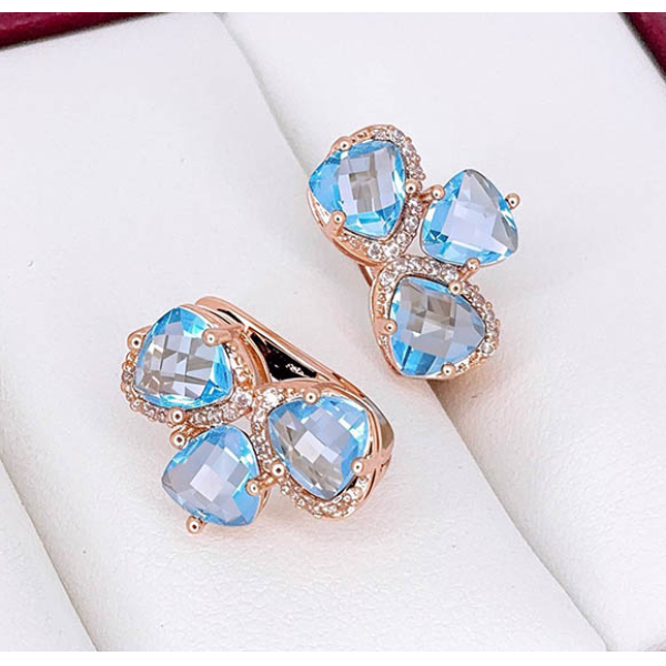 Гипоаллергенная бижутерия. Покрытый золотом 585 пробы ювелирный сплав, фианитовые вставки. Высота серег 1,6 см, английский замок.