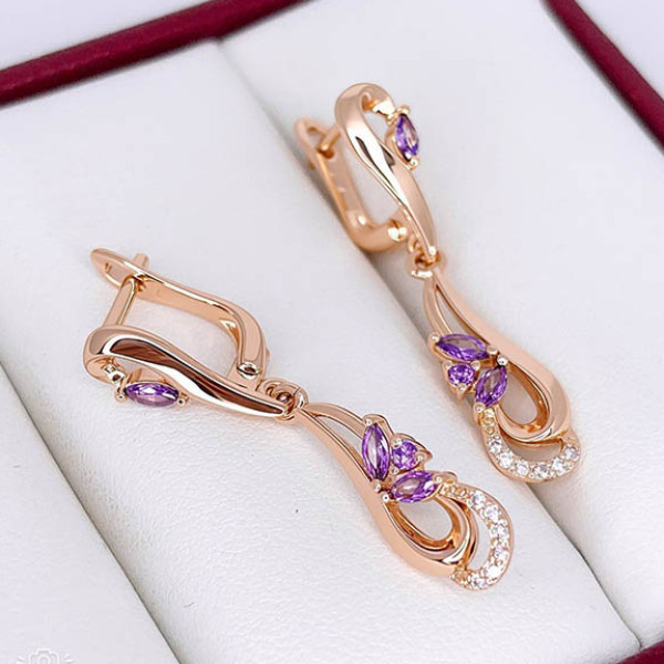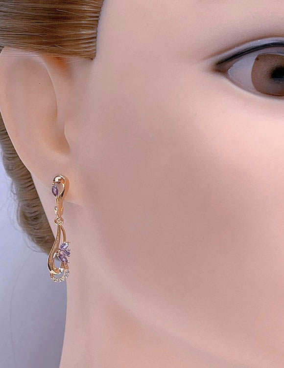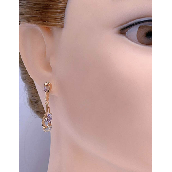 Гипоаллергенная бижутерия. Покрытый золотом 585 пробы ювелирный сплав, вставки — фианиты. Размер 3,3 см, английский замок.
