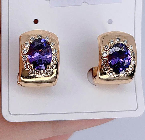 Гипоаллергенная бижутерия. Покрытый золотом 585 пробы ювелирный сплав, вставки — фианиты. У серег замок кольцо.