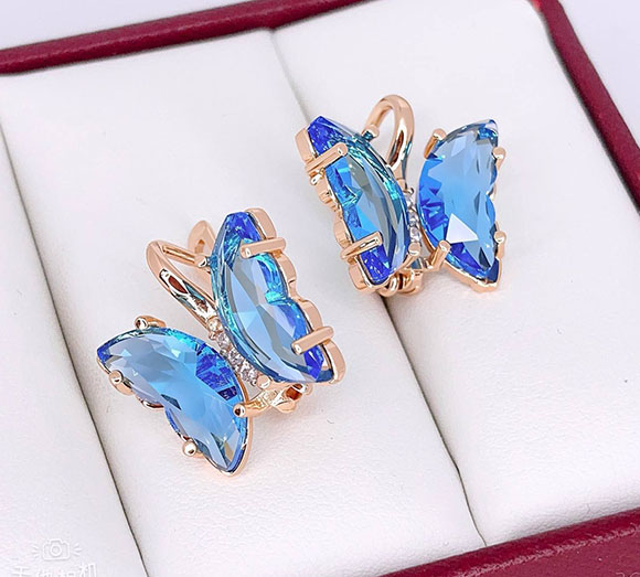 Не вызывающая аллергии бижутерия. Ювелирный сплав, покрытие — золото 585 пробы, вставки — фианиты. Размер 1,8 см, английский замок.