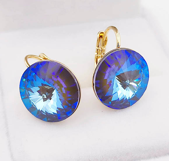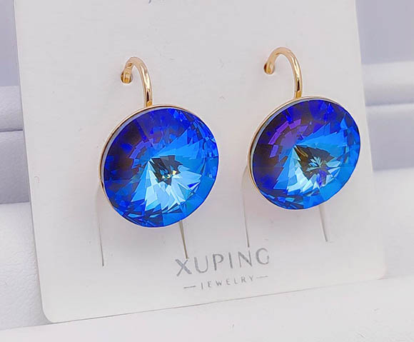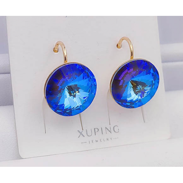 Не вызывающая аллергии бижутерия. Ювелирный сплав, покрытие — золото 585 пробы, вставки выполнены из кристаллов Сваровски. У серег замок левербек. Осталась 1 пара.