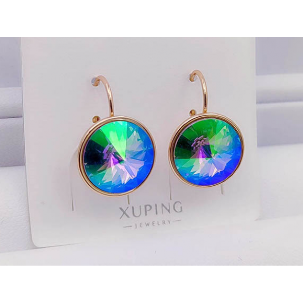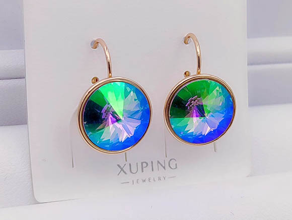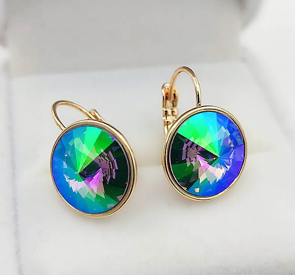 Ювелирный сплав, гипоаллергенное покрытие выполнено из золота 585 пробы, вставки — кристаллы Сваровски. Размер серег 2 см, замок левербек.