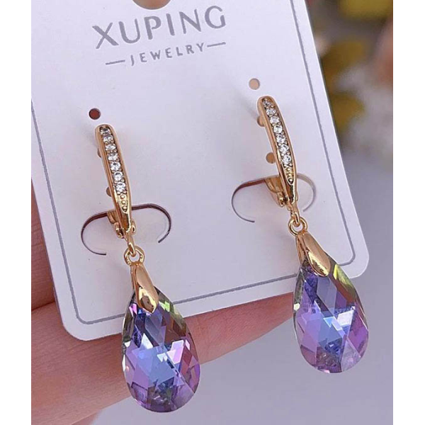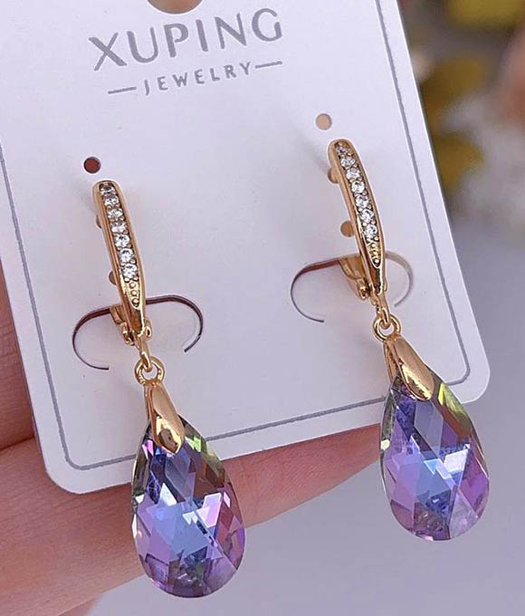 Не вызывающая аллергии бижутерия. Ювелирный сплав, покрытие — золото 585 пробы, вставки — кристаллы Сваровски. Длина серег 3,5 см, английский замок. Осталась 1 пара.