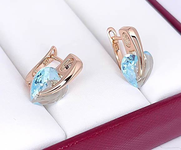 Позолоченный гипоаллергенный сплав (покрытие —золото 585 пробы), вставки — фианиты. Размер 1,6 см, английский замок.