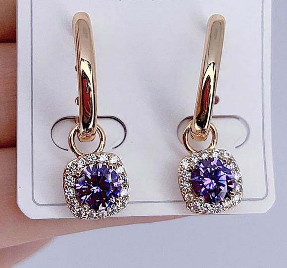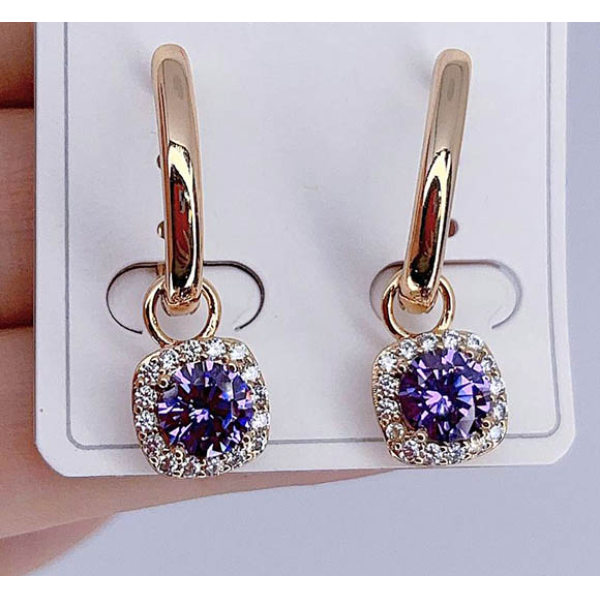 Позолоченный гипоаллергенный сплав (покрытие —золото 585 пробы), вставки выполнены из фианитов. У серег английский замок.