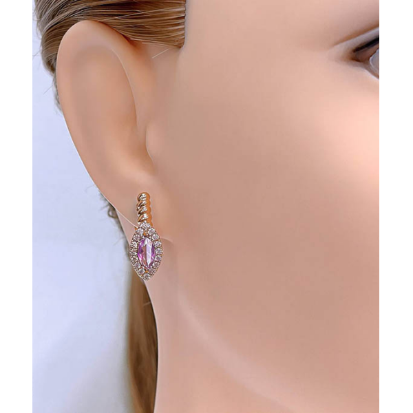 Гипоаллергенная бижутерия. Ювелирный сплав, покрытие выполнено из золота 585 пробы, вставки — фианиты. Длина серег 2 см, английский замок.