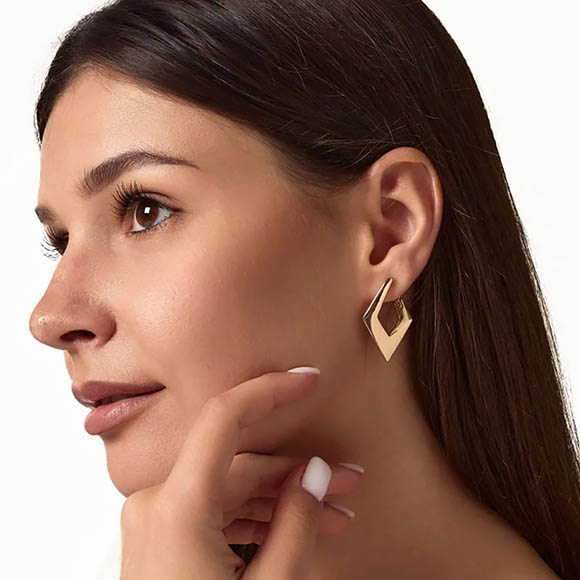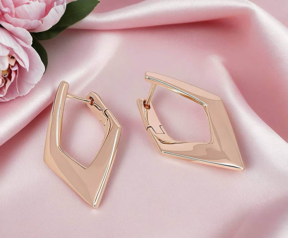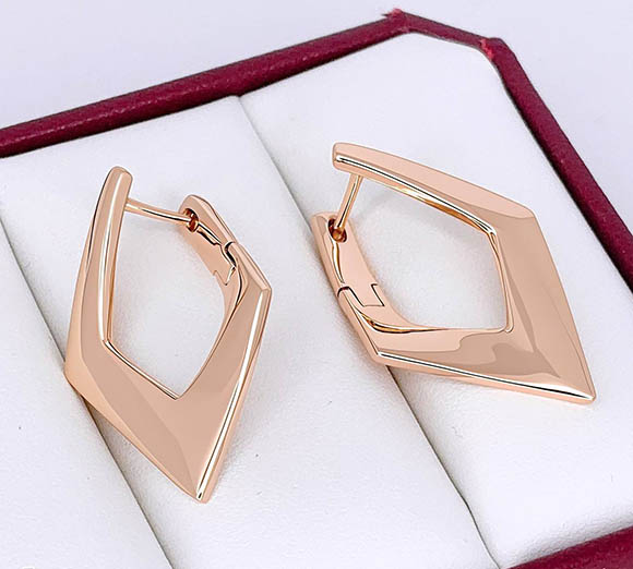 Не вызывающая аллергии бижутерия. Ювелирный сплав, покрытие — золото 585 пробы. Высота серег 3,5 см, английский замок.