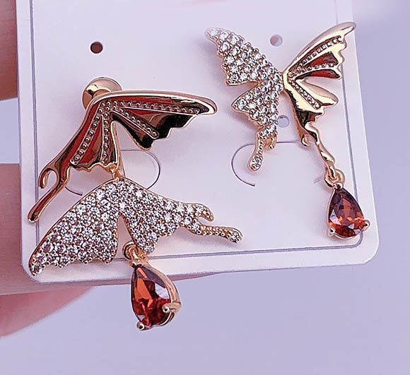 Позолоченный гипоаллергенный сплав (покрытие —золото 585 пробы), вставки — фианиты. У серег замок гвоздик.