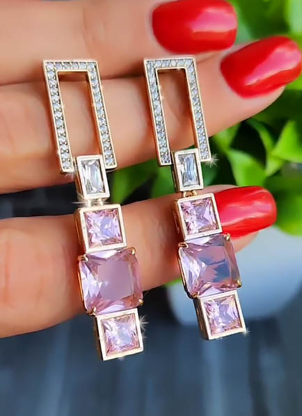 Позолоченный гипоаллергенный сплав (покрытие — из золота 585 пробы), вставки — фианиты. Длина 5,2 см, замок гвоздик.