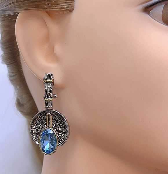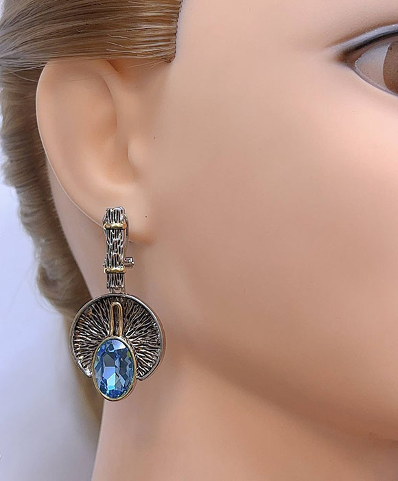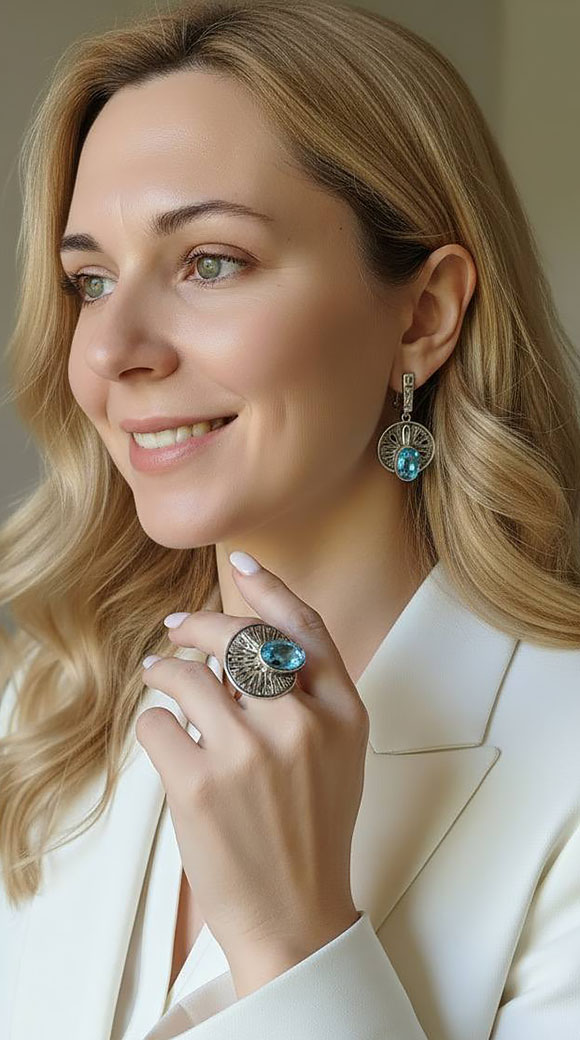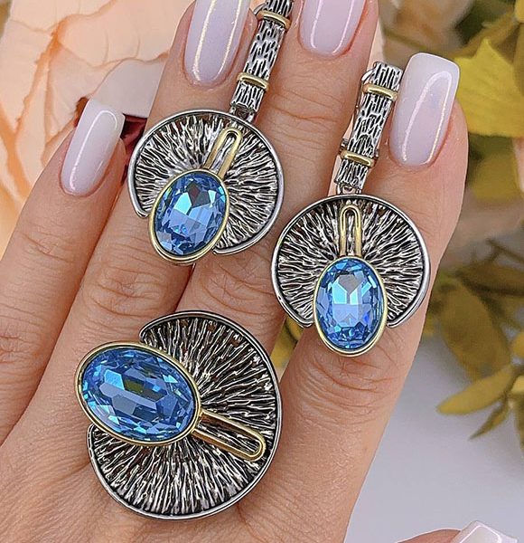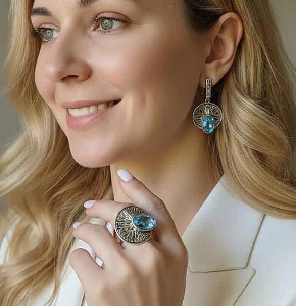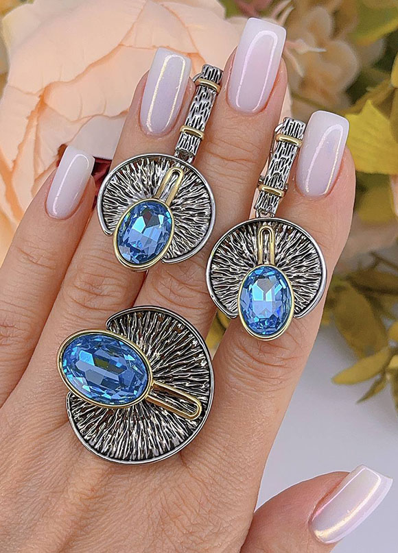 Не вызывающая аллергии бижутерия. Ювелирный сплав, покрытие — серебро, вставки — ювелирное стекло. Длина 4,8 см, итальянский замок. Размеры кольца: 18. Остался 1 комплект.