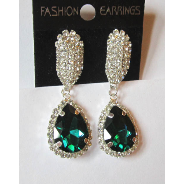 Гипоаллергенный ювелирный сплав, покрытие — серебро. Застежка — гвоздик (штифт с фиксирующим зажимом). Высота — 48 мм, ширина — 18 мм. Вставка — стразы и чешское стекло. Осталась 1 пара.