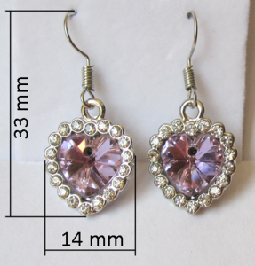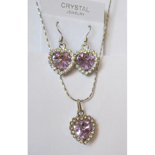 Гипоаллергенный ювелирный сплав, покрытие — серебро. Вставка — кристаллы Сваровски. Длина цепочки — 40+5 см. Кулон: высота — 13 мм, ширина — 14 мм. Серьги: высота — 33 мм, ширина — 14 мм. Серьга удерживается в мочке уха удлиненной петлей с силиконовым фиксатором.