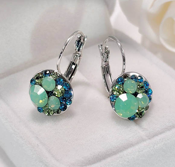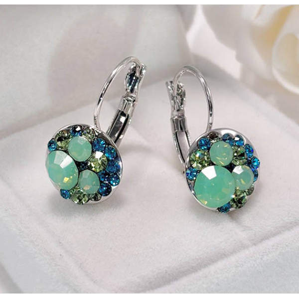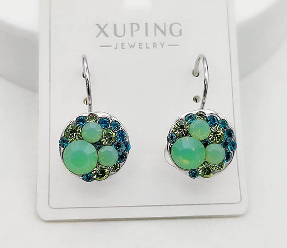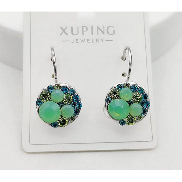 Гипоаллергенная бижутерия. Покрытый родием ювелирный сплав, вставки выполнены из кристаллов Сваровски. Высота серег 2,3 см, замок левербек.