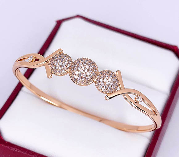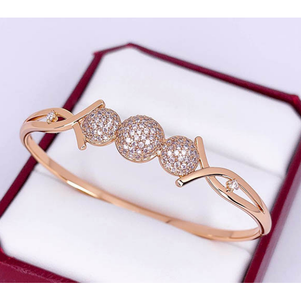 Ювелирный сплав, гипоаллергенное золотое покрытие (из золота 585 пробы), вставки — фианиты. Размер браслета 16,5 см.