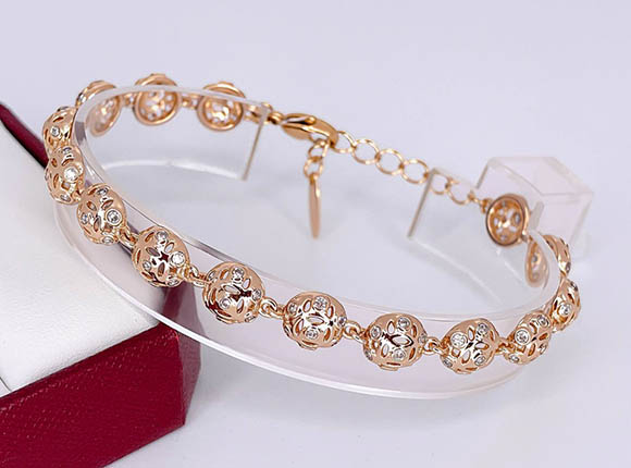 Ювелирный сплав, гипоаллергенное золотое покрытие (из золота 585 пробы), вставки — фианиты. Размер 18 см, добор 3 см, ширина 8 мм.