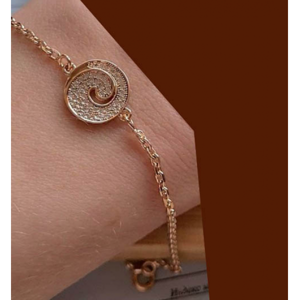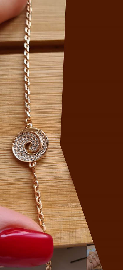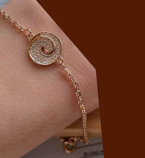 Не вызывающая аллергии бижутерия. Ювелирный сплав, покрытие — золото 585 пробы, вставки — фианиты. Размер браслета 17 см — 20 см.