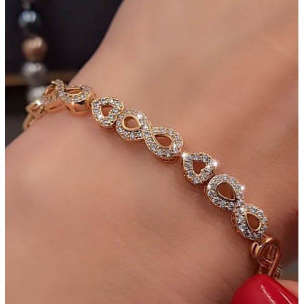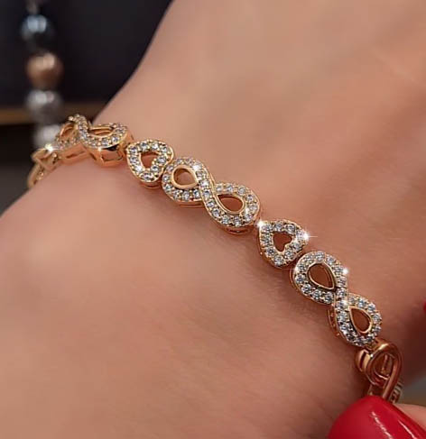 Не вызывающая аллергии бижутерия. Ювелирный сплав, покрытый золотом 585 пробы, вставки выполнены из фианитов. Длина 18,5 см.