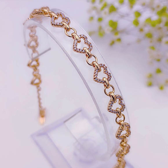 Ювелирный сплав, гипоаллергенное покрытие из золота 585 пробы, вставки выполнены из фианитов. Длина 18 см.